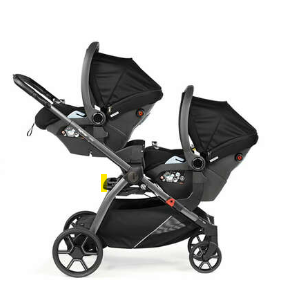 L’YPSI peut être transformé en poussette double avec l’achat d’un jeu d’adaptateurs doubles. Pour utiliser un siège auto en mode double, fixez les adaptateurs doubles en position haute et basse, puis ajoutez l’adaptateur pour siège auto. Dans ce cas, seules les coquilles Peg Perego seront compatibles.